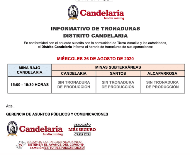 INFORMATIVO DE TRONADURAS DISTRITO CANDELARIA / MIÉRCOLES 26 DE AGOSTO DE 2020 26 de agosto de 2020 por Admin
