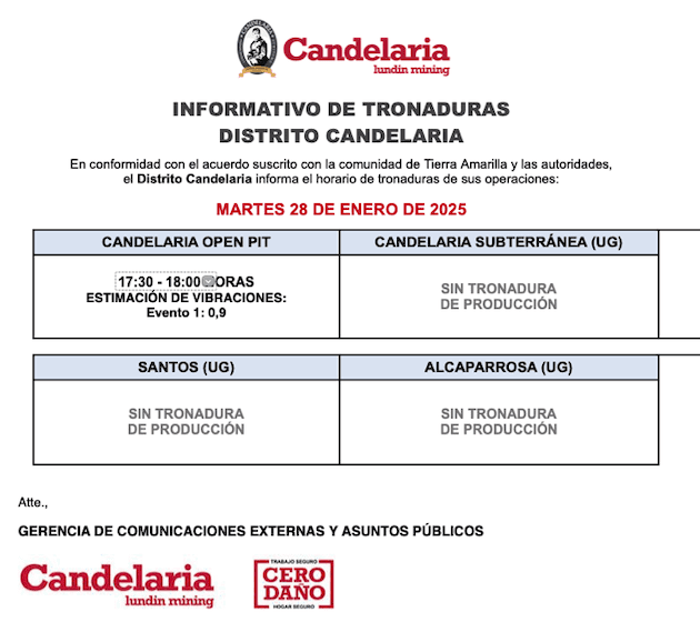 INFORMATIVO DE TRONADURAS CANDELARIA / MARTES 28 DE ENERO DE 2025