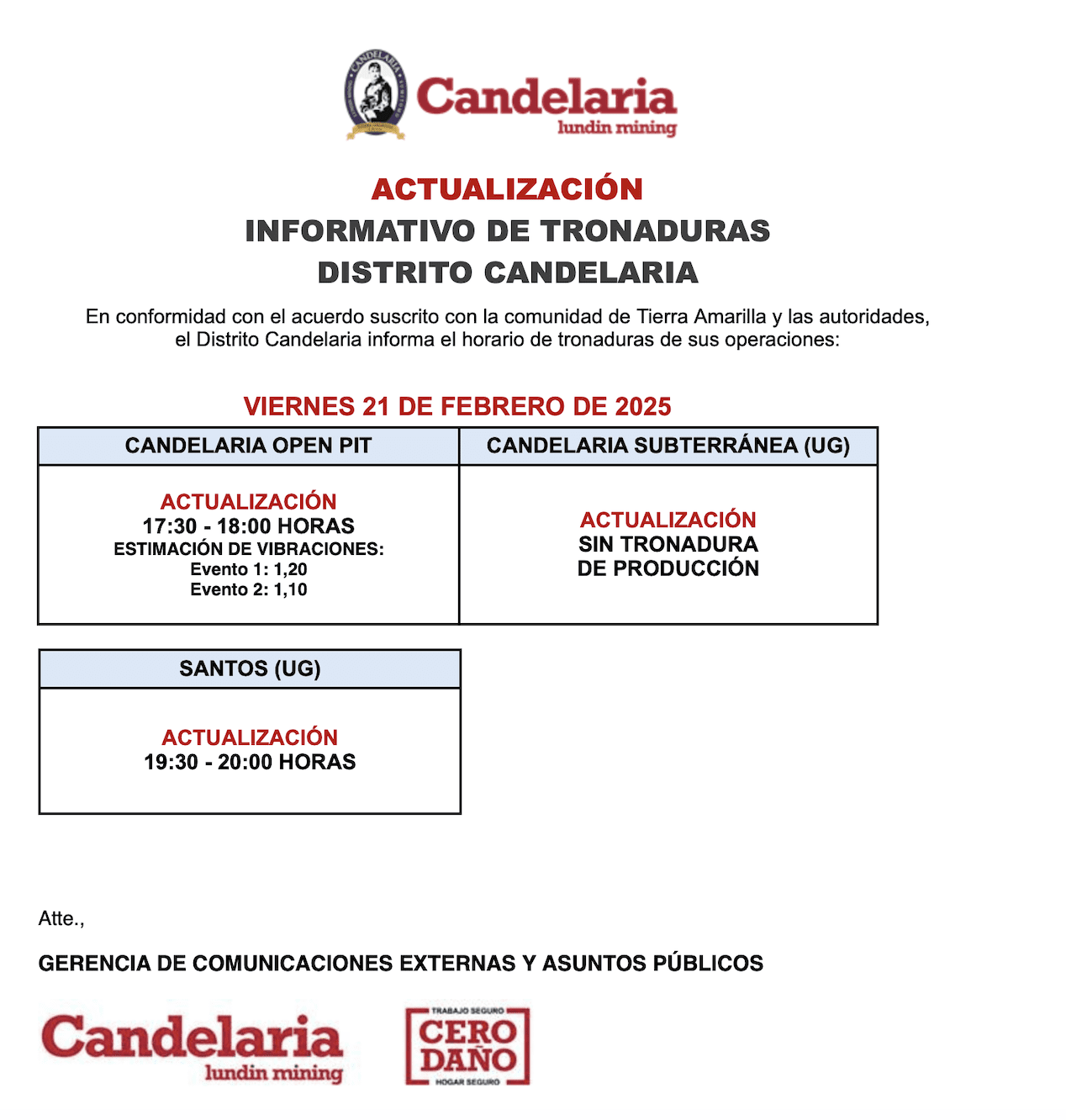 ACTUALIZACIÓN DE TRONADURAS CANDELARIA / VIERNES 21 DE FEBRERO DE 2025