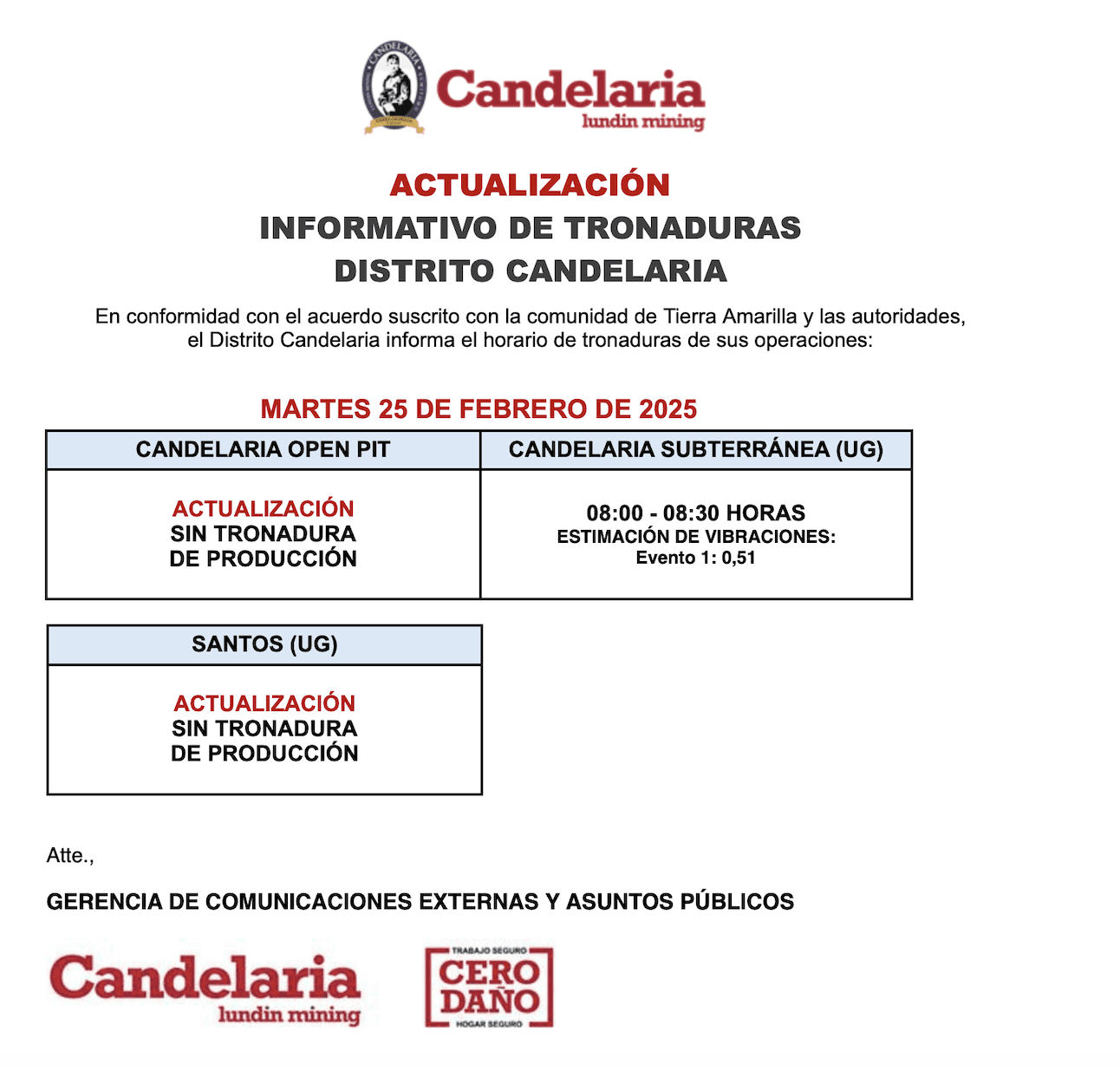 ACTUALIZACIÓN DE TRONADURAS DISTRITOA CANDELARIA / MARTES 25 DE FEBRERO DE 2025