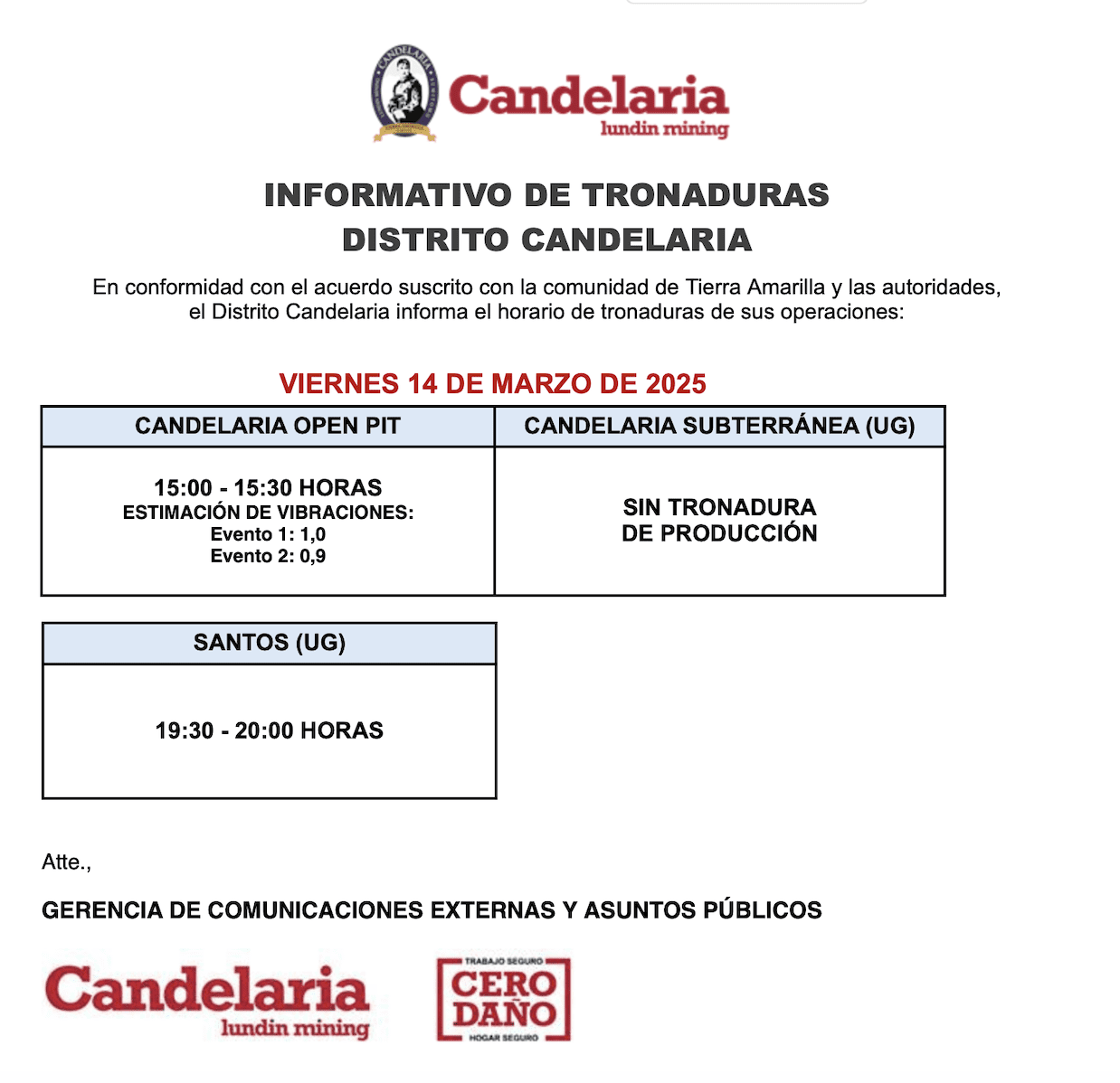 - , Informe tronadura Candelaria