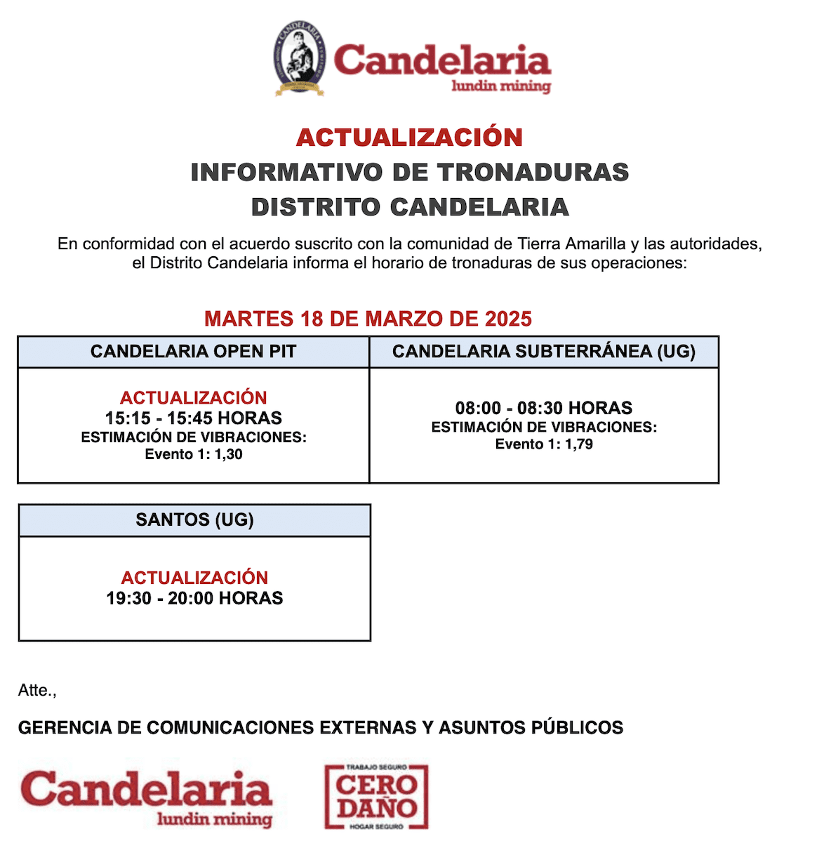 - , Informe tronadura Candelaria