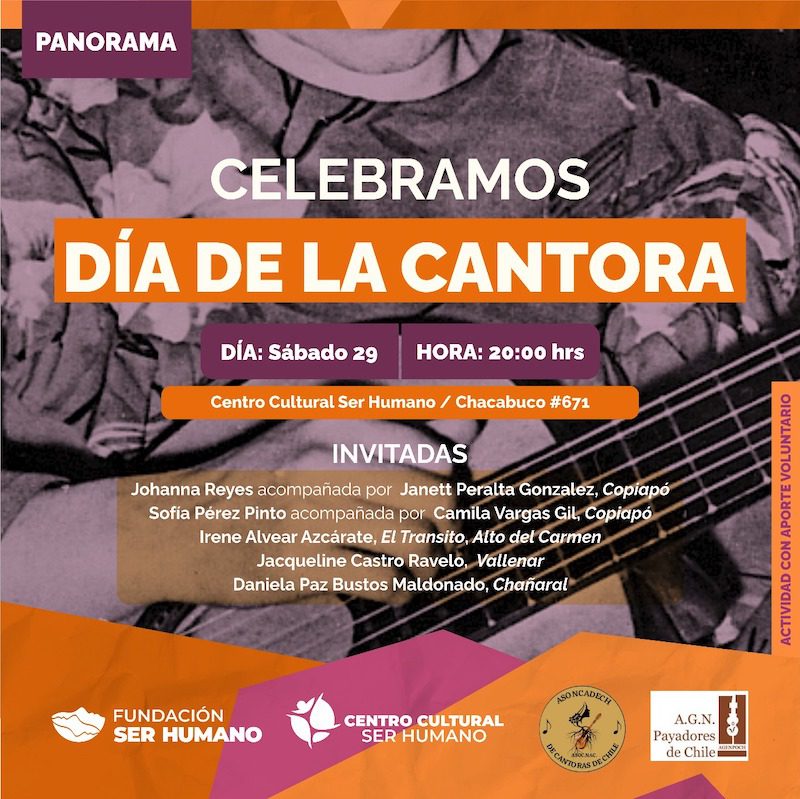Durante marzo se celebra el Día de la Cantora Chilena, fecha que destaca la figura de la Cantora Chilena tradicional en eventos sociales, principalmente por cuecas, tonadas, vals, y se ubica en la música criolla. Por esto, el Centro Cultural Ser Humano será escenario de un nuevo evento que conmemora esta fecha y da lugar a grandes mujeres regionales exponentes de esta área.