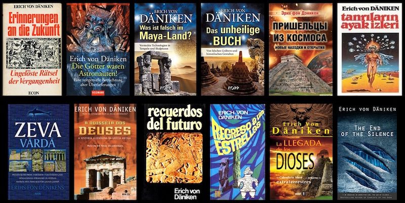 Algunas de las obras de Erich von Däniken publicadas en más de treinta y cinco idiomas.