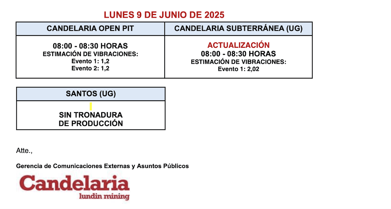 - , Informe tronadura Candelaria
