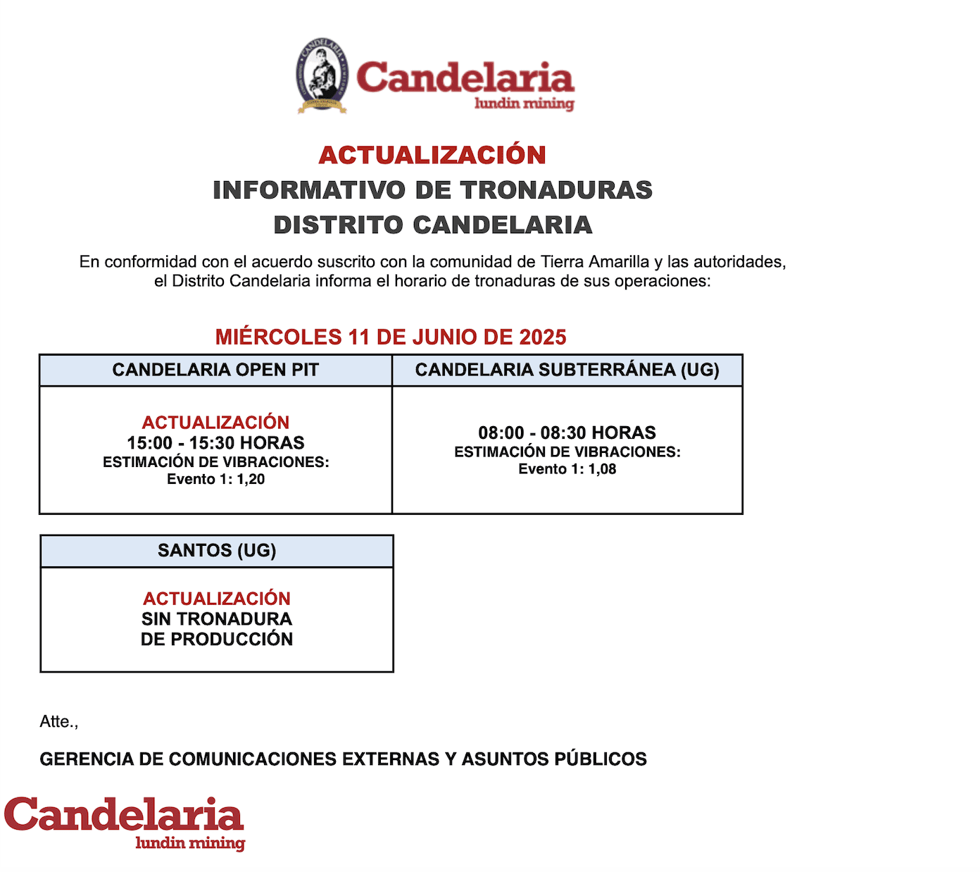 ACTUALIZACIÓN DE TRONADURAS DISTRITO CANDELARIA / MIÉRCOLES 11 DE JUNIO DE 2025