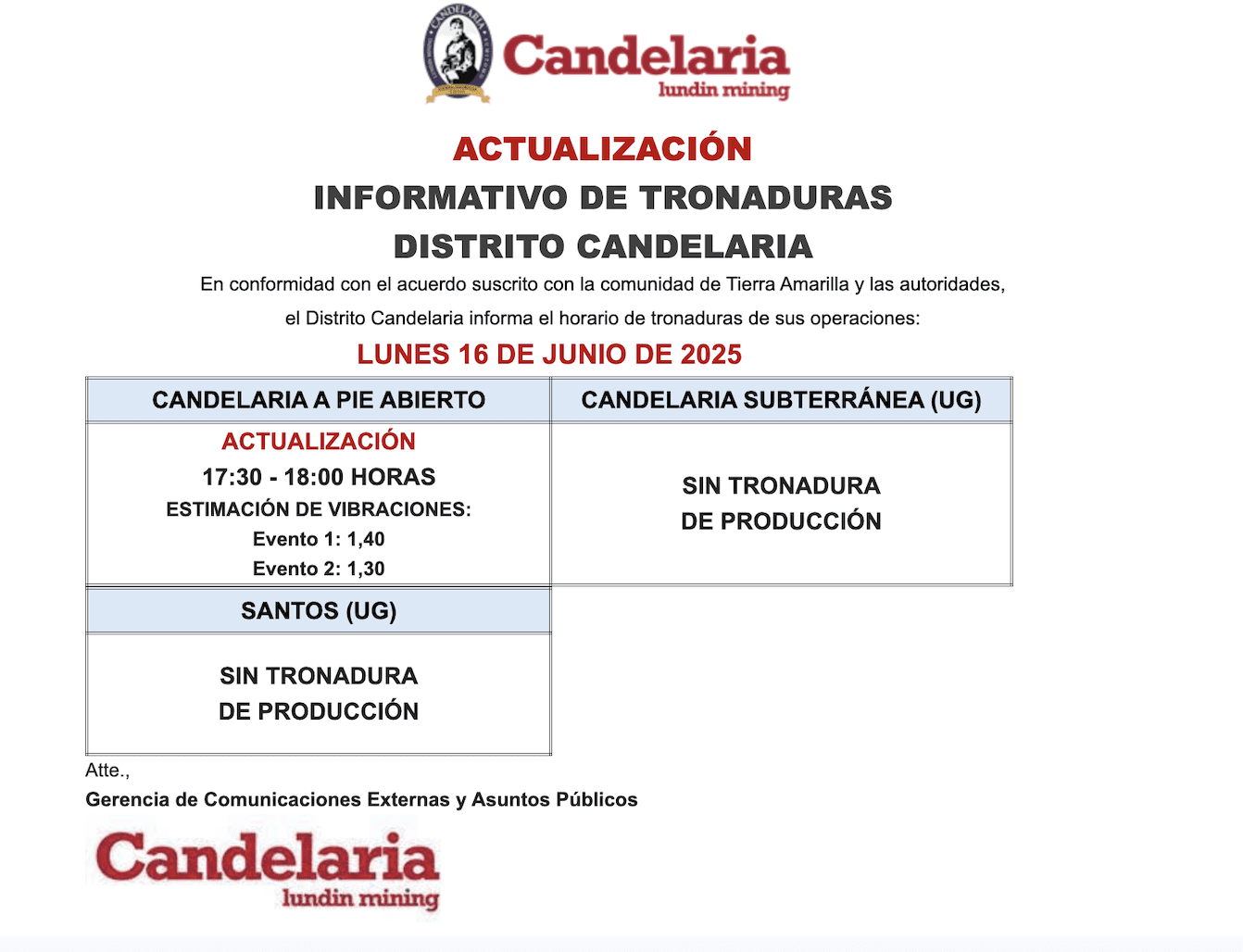 - , Informe tronadura Candelaria