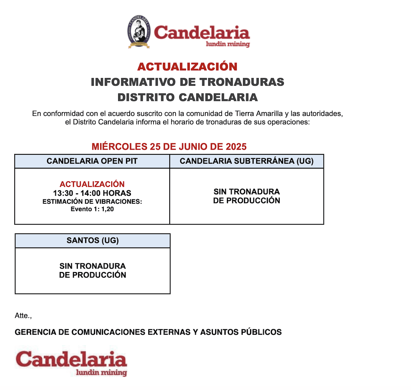 ACTUALIZACIÓN DE TRONADURAS CANDELARIA / MIÉRCOLES 25 DE JUNIO DE 2025