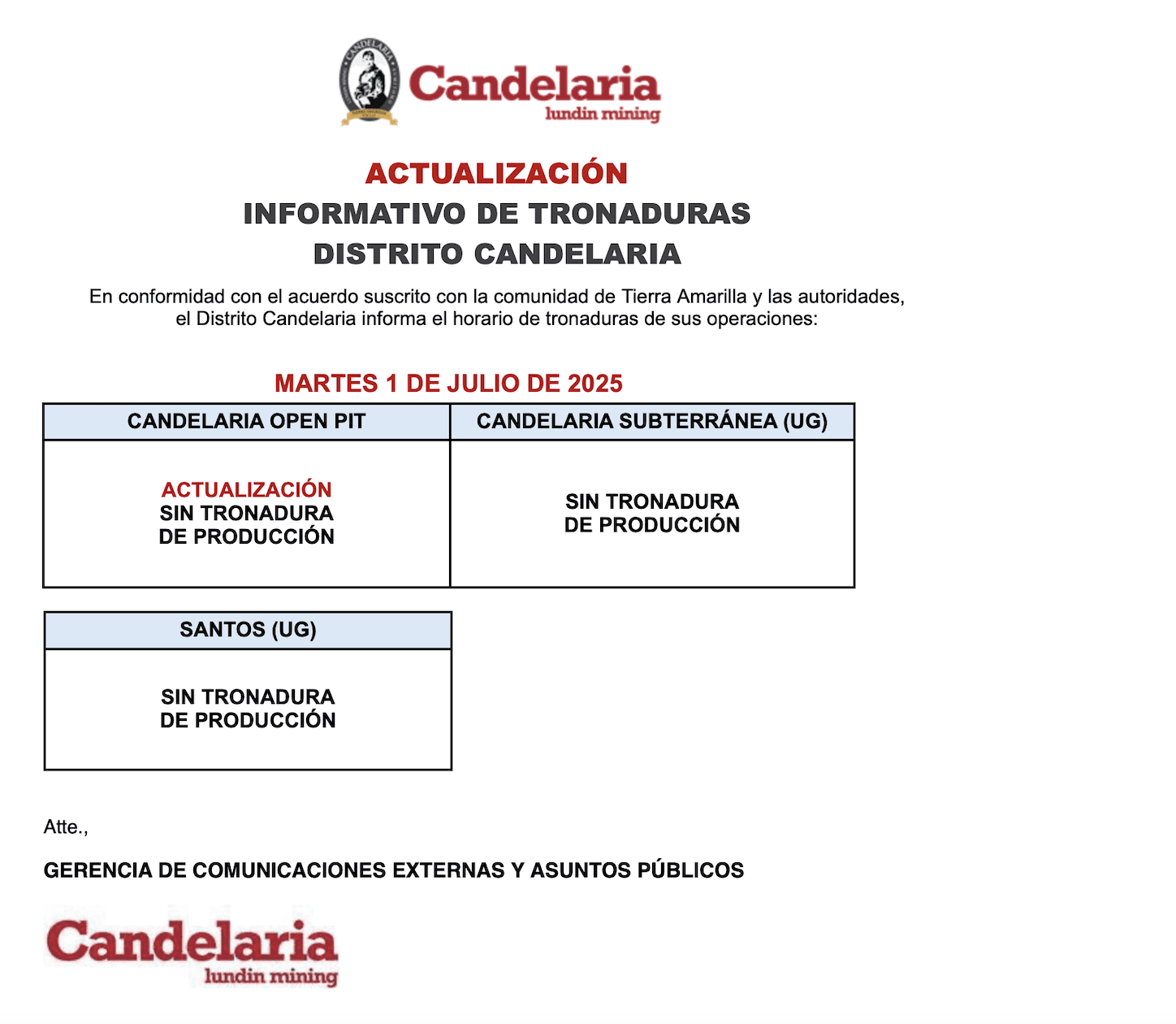- , Informe tronadura Candelaria