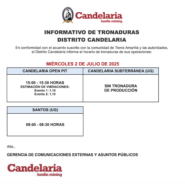 INFORMATIVO DE TRONADURAS DISTRO CANDELARIA / MIÉRCOLES 2 DE JULIO DE 2025