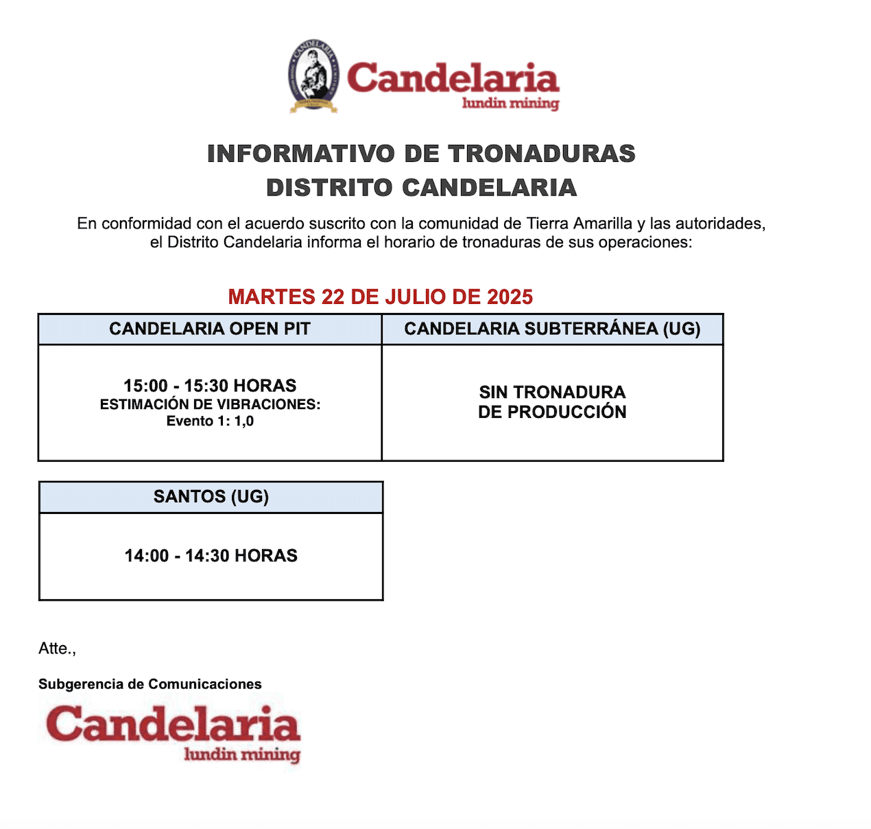 INFORMATIVO DE TRONADURAS DISTRITO CANDELARIA / MARTES 22 DE JULIO DE 2025