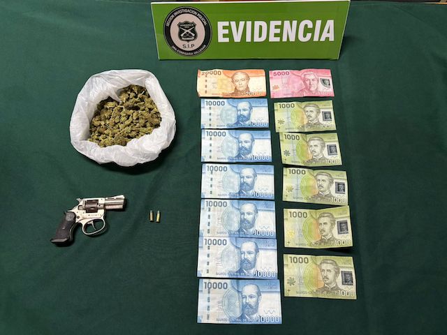 En Vallenar: Prevención activa permitió a Carabineros detener individuo que portaba marihuana, revólver, municiones y dinero