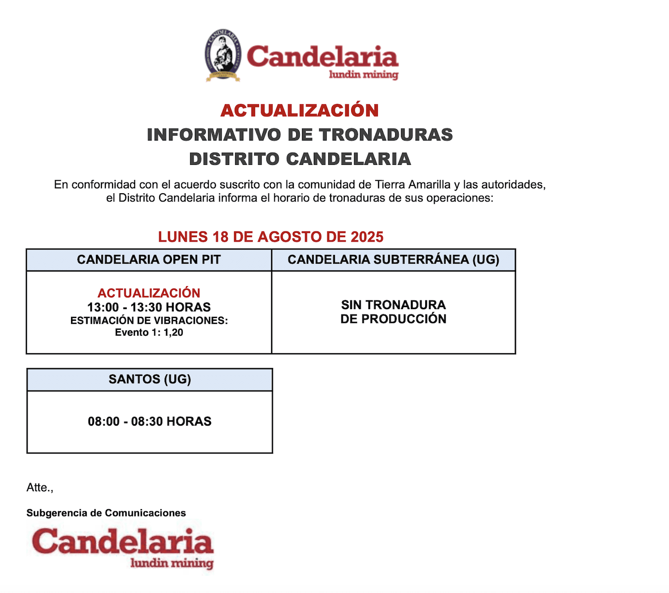 ACTUALIZACIÓN DE TRONADURAS DISTRITO CANDELARIA / LUNES 18 DE AGOSTO DE 2025