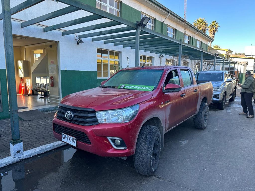 Tras dicha información el personal que patrullaba por la comuna, divisa la camioneta con las mismas características procediendo a su fiscalización en el km 700 y al verificar la placa patente y N° de chasis del móvil se constata que dicho vehículo mantenía encargo vigente de fecha 17 de julio de 2025, por el delito de robo de vehículo motorizado denuncia realizada en la ciudad de Coquimbo.