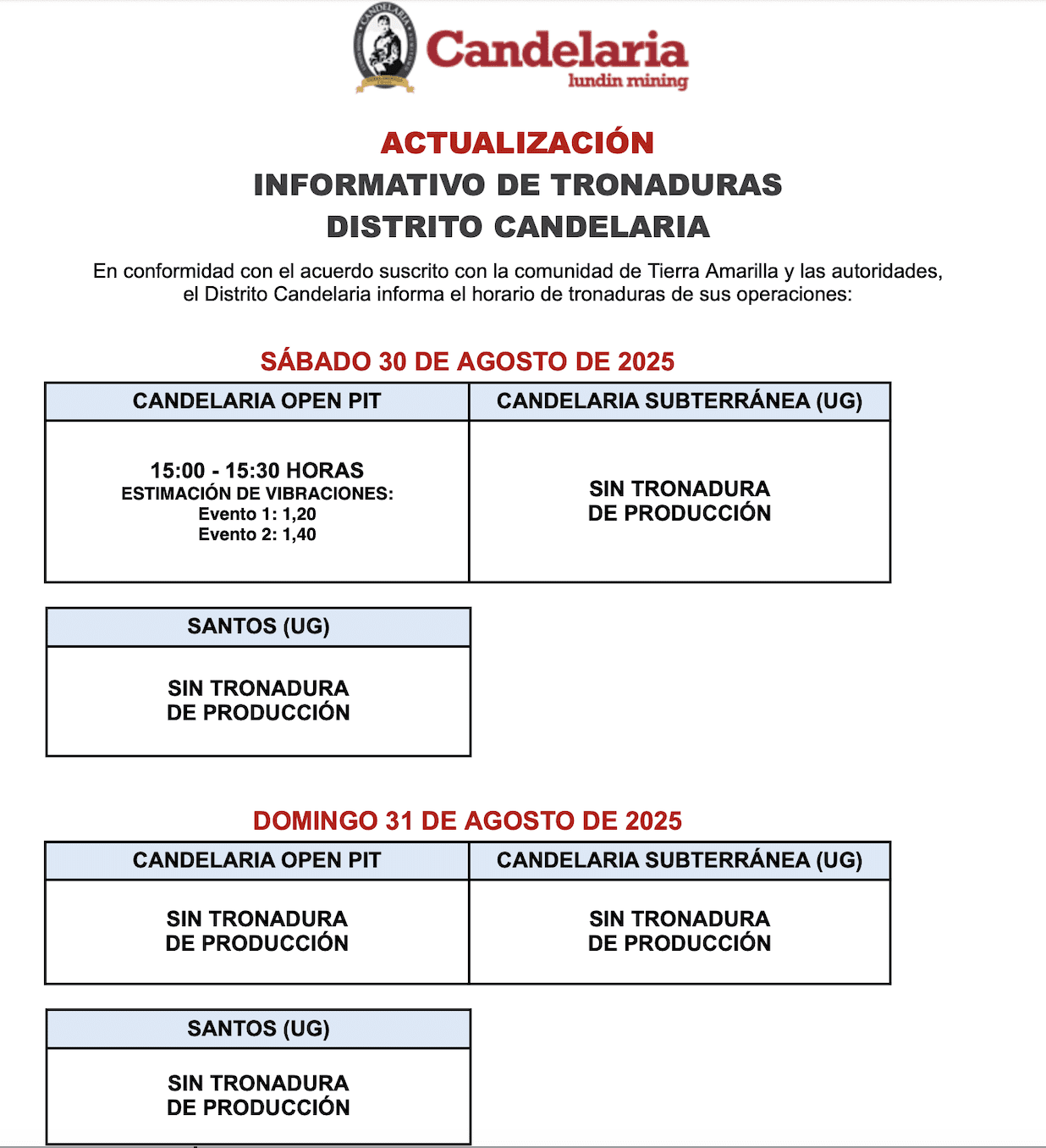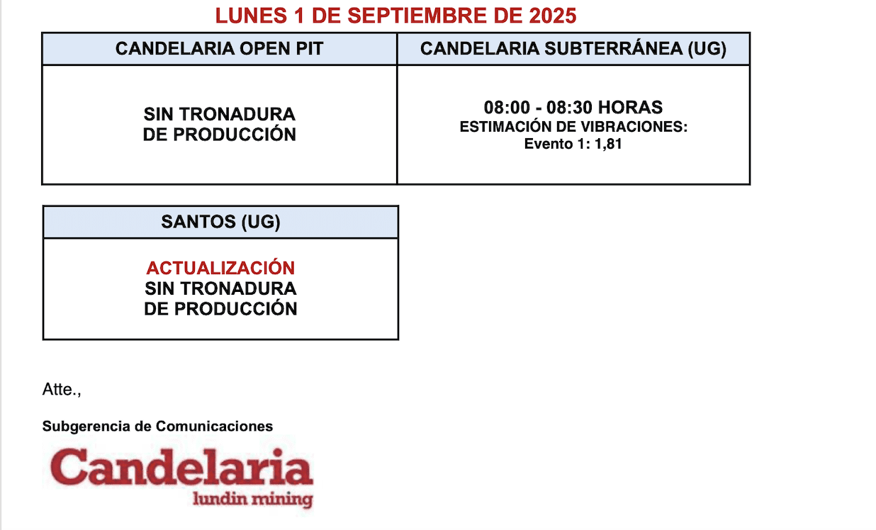 ACTUALIZACIÓN DE TRONADURAS CANDELARIA / SÁBADO 30, DOMINGO 31 DE AGOSTO y LUNES 1 DE SEPTIEMBRE DE 2025