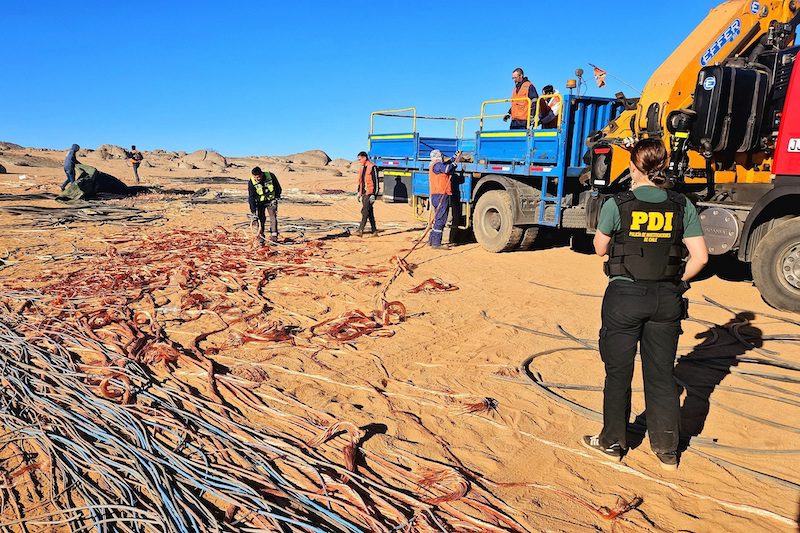 El oficial policial añadió que “en el sitio de suceso se logró determinar que el hallazgo corresponde a un kilómetro y medio de cableado de cobre, con un peso de cuatro toneladas, material avaluado en más de 85 millones de pesos. Tras el hecho, detectives coordinaron con la Fiscalía Local de Caldera para hacer entrega de las especies a la empresa que había sufrido el robo”.