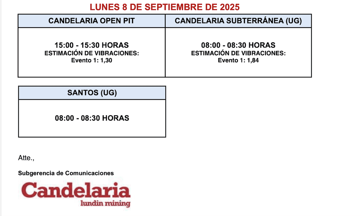 INFORMATIVO DE TRONADURAS CANDELARIA / SÁBADO 6, DOMINGO 7 y LUNES 8 DE SEPTIEMBRE DE 2025