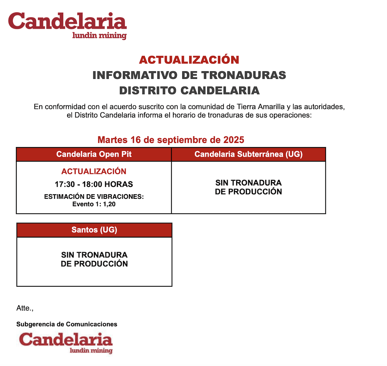 ACTUALIZACIÓN DE TRONADURAS DISTRITO CANDELARIA / MARTES 16 DE SEPTIEMBRE DE 2025