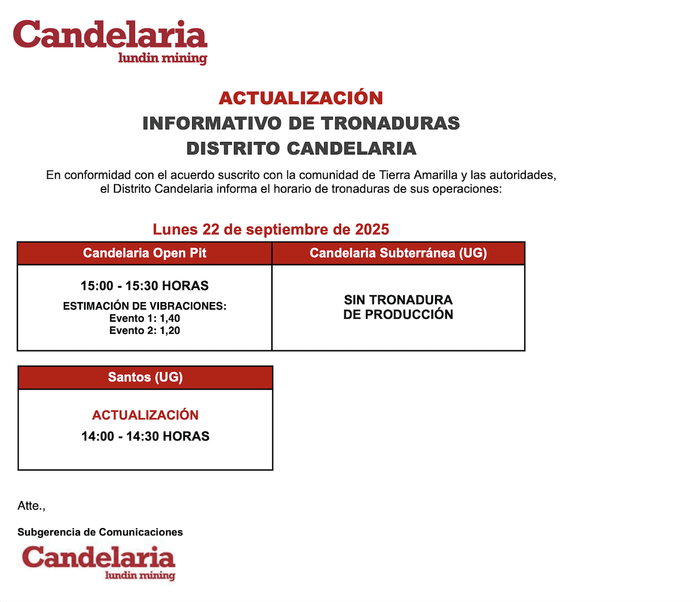 - , Informe tronadura Candelaria