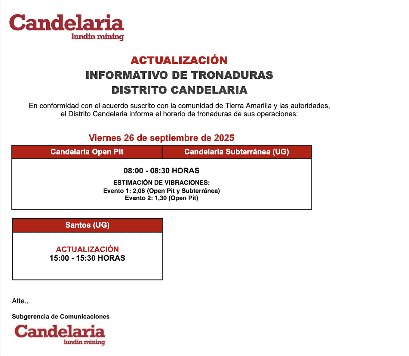 - , Informe tronadura Candelaria