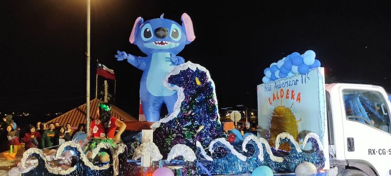 Un tremendo evento para celebrar los 175 aniversario de Caldera, esta actividad es un encuentro familiar que entrega espacios a la comunidad y de poder participar con un gran evento cultural de los más niños hasta los adultos mayores y que fomenta el turismo. Siempre es materia de atracción de ver los carros alegóricos quienes con mucha creatividad este año los participantes se las ingeniaron para poner en escena sus ingeniosas creaciones como el león en su quebrada; la fiesta de Stich, el castillo medieval; un carro con parrilla con asado en su interior pero al final fuera de competencia se presentó el carro municipal que fue muy aplaudido como el ovni con sus tripulantes al interior que venían de un universo más allá del nuestro y que desarrollaron una performance incluyendo a la primera autoridad comunal Brunilda González y sus directores.