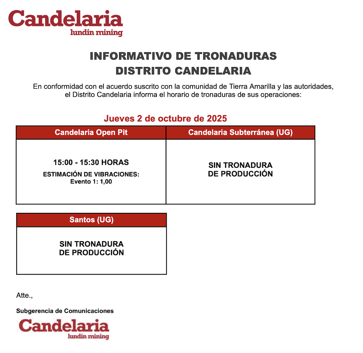 INFORMATIVO DE TRONADURAS DISTRITO CANDELARIA / JUEVES 2 DE OCTUBRE DE 2025