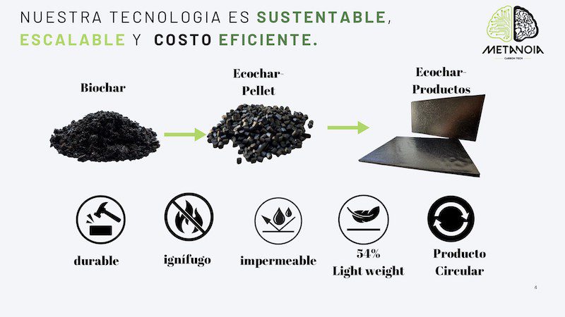 “El sector de la construcción genera el 35% de los residuos sólidos en Chile y el 22,8% de las emisiones de CO2. En respuesta a ello nosotros proponemos un modelo que integra la gestión y valorización de recursos con la fabricación de productos constructivos que logran retener el CO2 atmosférico”, señaló la fundadora de Metanoia.