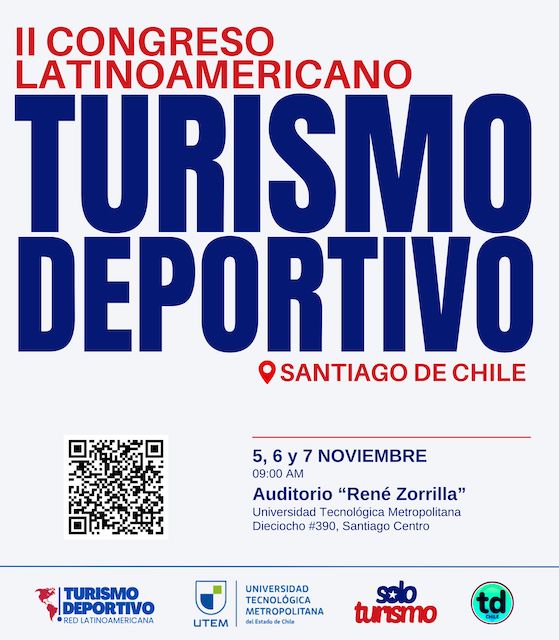 La Red Latinoamericana de Turismo Deportivo (RLTD) anuncia oficialmente la realización del II Congreso Latinoamericano de Turismo Deportivo “Santiago 2025”, que tendrá lugar los días 5, 6 y 7 de noviembre de 2025 en el Auditorio René Zorrilla de la Universidad Tecnológica Metropolitana, en la ciudad de Santiago de Chile. El evento contará con cupos limitados y reunirá a representantes de gobiernos locales, universidades, instituciones deportivas, emprendedores y profesionales del sector, en torno a un propósito común: fortalecer la gestión sostenible del turismo deportivo en América Latina.