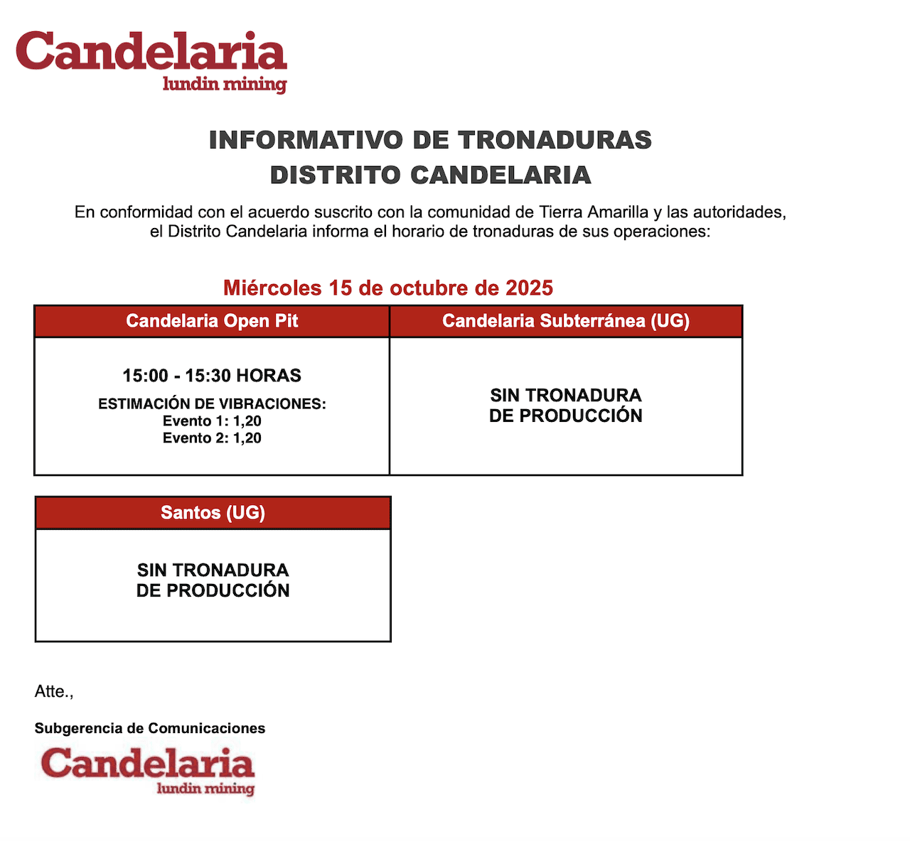 INFORMATIVO DE TRONADURAS DISTRITO CANDELARIA / MIÉRCOLES 15 DE OCTUBRE DE 2025