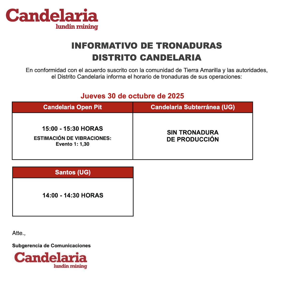 INFORMATIVO DE TRONADURAS DISTRITO CANDELARIA / JUEVES 30 DE OCTUBRE DE 2025