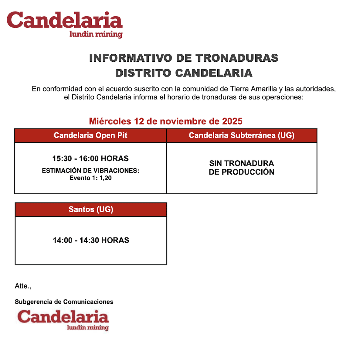 INFORMATIVO DE TRONADURAS MIÉRCOLES 12 DE NOVIEMBRE DE 2025