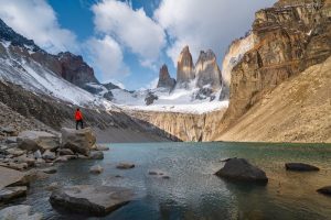 Hiker in Torres del Paine National Park, Chilean Patagonia, South America