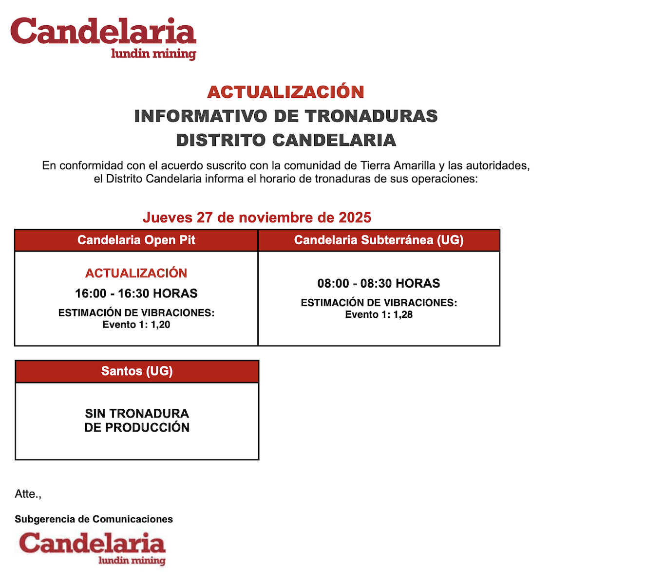 ACTUALIZACIÓN DE TRONADURAS CANDELARIA / JUEVES 27 DE NOVIEMBRE DE 2025