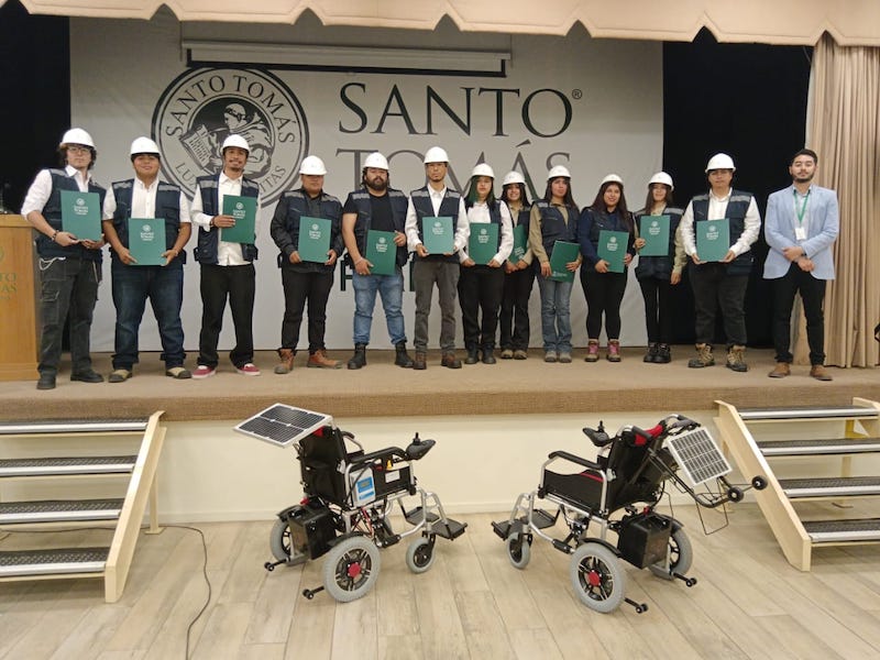 Innovador proyecto: carrera Técnico en Energía Solar de Santo Tomás Copiapó crea cargador fotovoltaico portátil para silla de rueda eléctrica