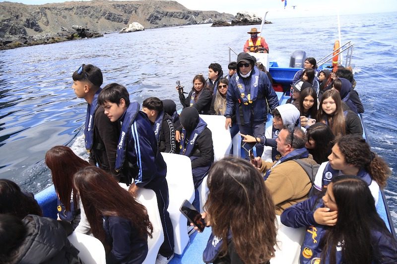 Contentos y emocionados se mostraron las y los niños del octavo básico B de Freirina que en su último año juntos vivieron una experiencia única en la caleta Chañaral de Aceituno. A pesar de que en esta oportunidad las ballenas no se hicieron ver, las y los jóvenes quedaron sorprendidos por un grupo de delfines nariz de botella que acompañaron el bote durante unos minutos. También pudieron ver Pingüinos de Humboldt, lobos marinos y la belleza de la Isla Chañaral.