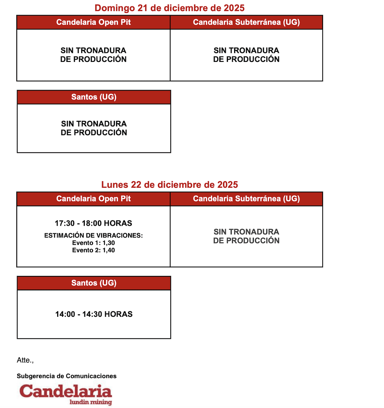 - , Informe tronadura Candelaria