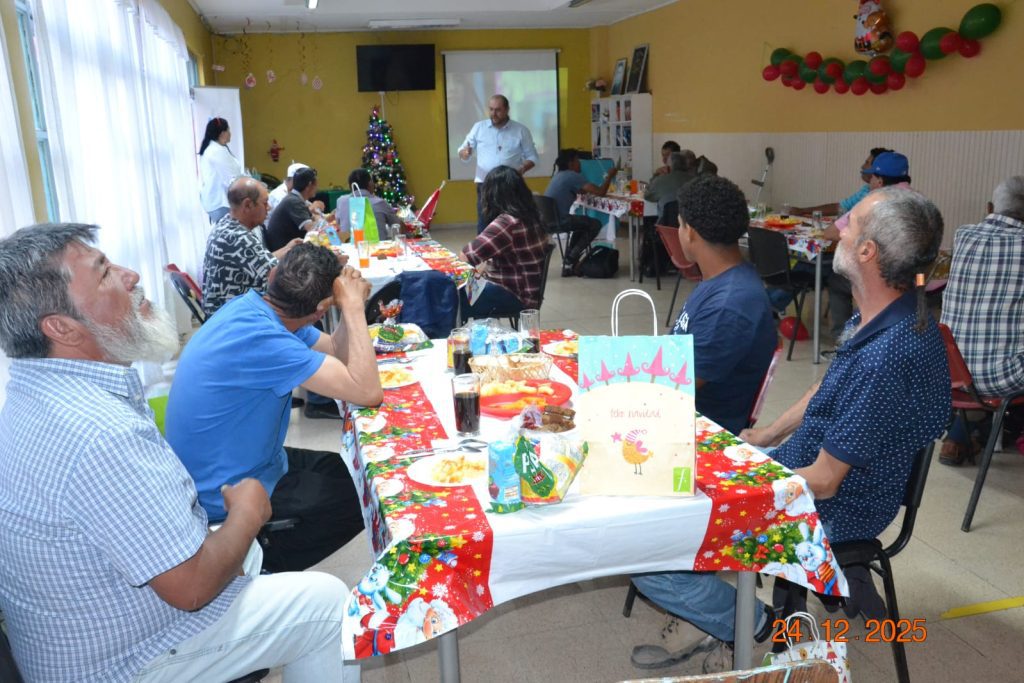 Una emotiva y significativa cena navideña se vivió entre las personas en situación de calle que este 24 de diciembre se encontraban de paso en la Hospedería del Hogar de Cristo en Copiapó.