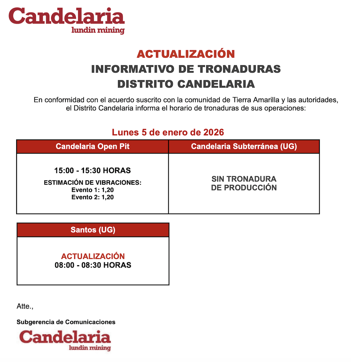 - , Informe tronadura Candelaria