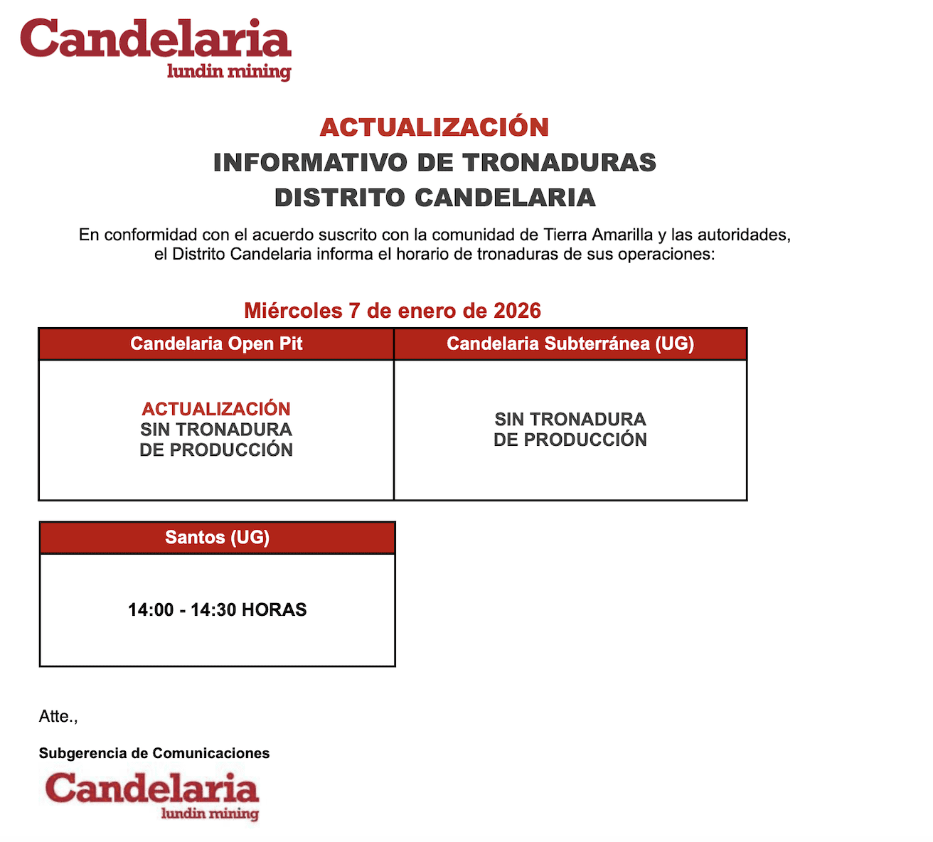 ACTUALIZACIÓN DE TRONADURAS CANDELARIA / MIÉRCOLES 7 DE ENERO DE 2026