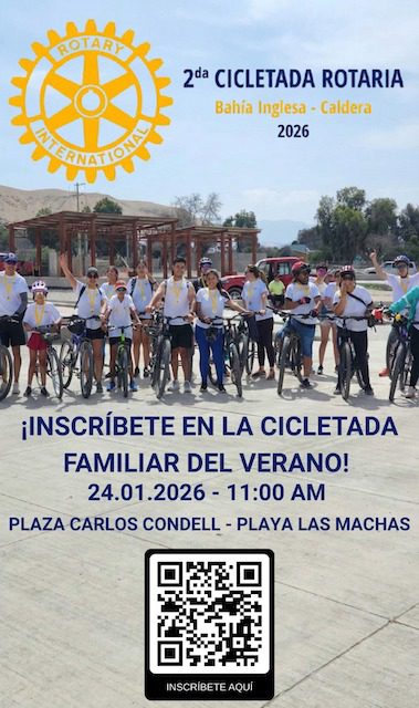 Para el sábado 24 de enero del presente año, el Rotary Club Satélite Bahía de Caldera, ha programado la segunda versión de la Cicletada Familiar a partir de las 11,00 horas desde la plaza Carlos Condell de caldera hasta la playa Las Machas.