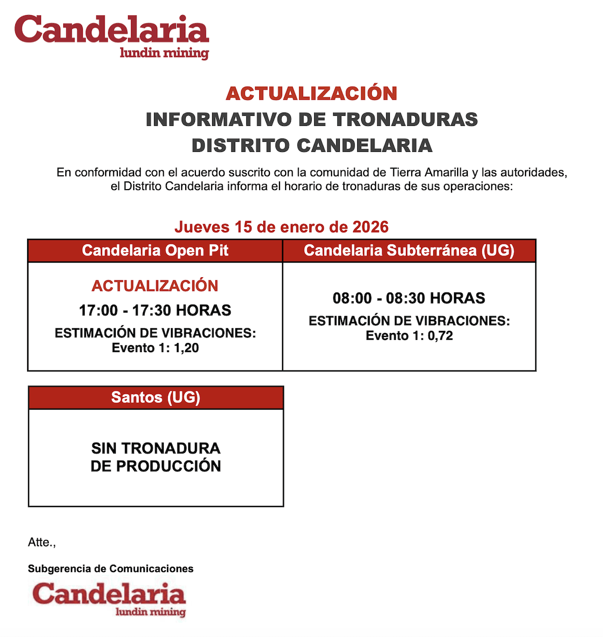 ACTUALIZACIÓN DE TRONADURAS CANDELARIA / JUEVES 15 DE ENERO DE 2026