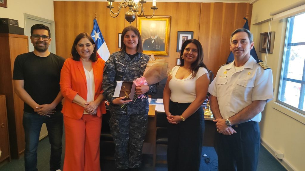 La alcaldesa de Caldera fue recibida por el Gobernador Marítimo Cristian Ortega Valdivia en esta visita donde la primera autoridad agradeció el compromiso de la Teniente Gutiérrez en cada una de las tareas de resguardo de la seguridad y el orden en el borde costero de Caldera una mujer que siempre a sabido servir al país en cada una de las distintas circunstancias que el devenir les deparó, siendo fiel y consecuente con los principios rectores que la Armada ha impartido.