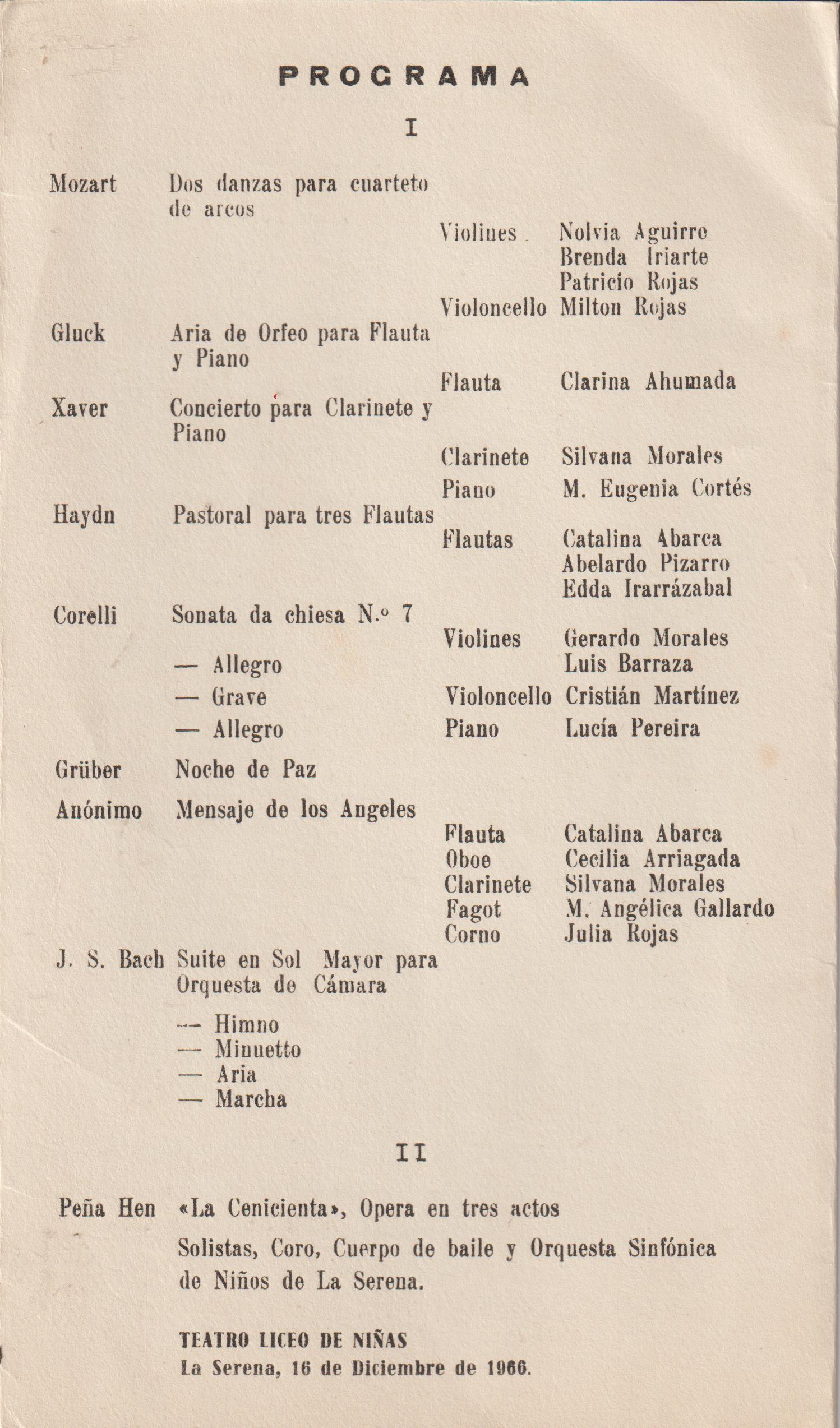 La idea de abordar* con niños el campo operístico ha constituido desde hace mucho tiempo una meta importante en el plan docente experimental que desarrollan el Conservatorio Regional y la Escuela Experimental de Música de La Serena. El nivel de la enseñanza musical y en general artística en la educación chilena, hacen difícil concebir esta empresa como un objetivo realizable, por los múltiples recursos que requiere: solistas, coros, danza, escenografía y desde luego una Orquesta Sinfónica. No obstante, en esta ocasión se está demostrando que ello es posible.