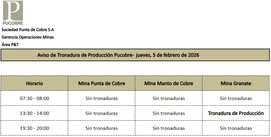 AVISO DE TRONADURAS DE PRODUCCIÓN PUCOBRE / JUEVES 5 DE FEBRERO DE 2026 Admin Send an email 5 de febrero de 20260 5 Menos de un minuto Facebook X Admin Send an email 5 de febrero de 20260 5 Menos de un minuto Facebook X compartir Facebook X LinkedIn Tumblr Pinterest Reddit VKontakte Odnoklassniki Pocket Compartir por correo electrónico Imprimir