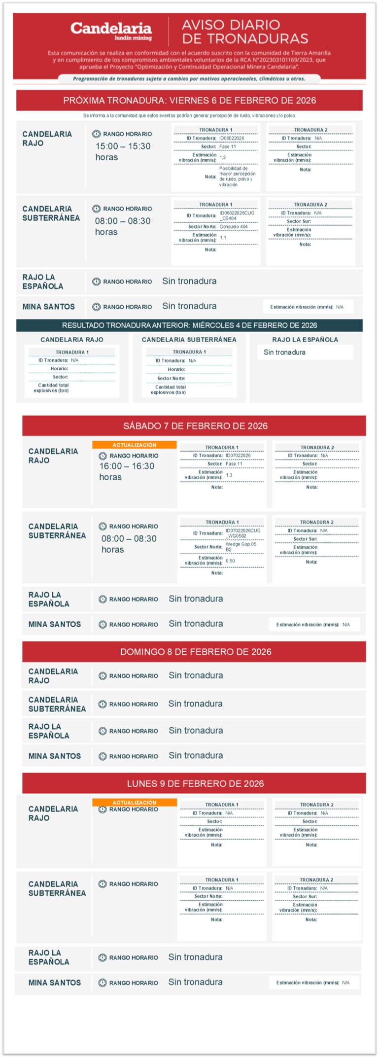 ACTUALIZACIÓN: INFORMATIVO DE TRONADURAS CANDELARIA / VIERNES 06, SÁBADO 07, DOMINGO 08 Y LUNES 09 DE FEBRERO DE 2026 Admin Send an email 8 de febrero de 20260 5 Menos de un minuto Facebook X Admin Send an email 8 de febrero de 20260 5 Menos de un minuto Facebook X compartir Facebook X LinkedIn Tumblr Pinterest Reddit VKontakte Odnoklassniki Pocket Compartir por correo electrónico Imprimir