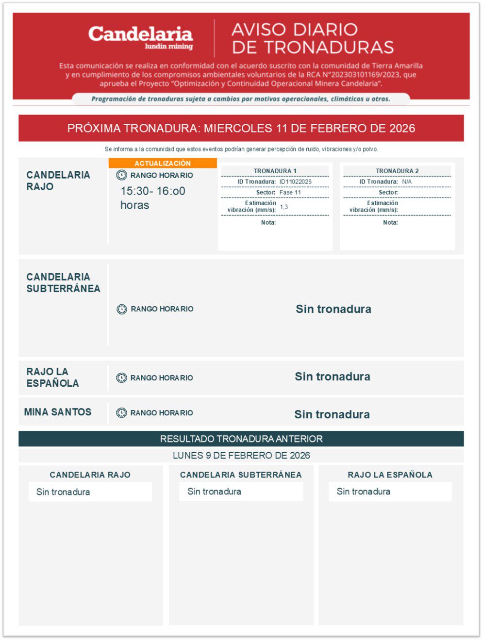 - , Informe tronadura Candelaria