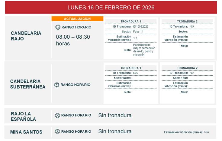 ACTUALIZACIÓN DE TRONADURAS DISTRITO CANDELARIA / LUNES 16 DE FEBRERO DE 2026