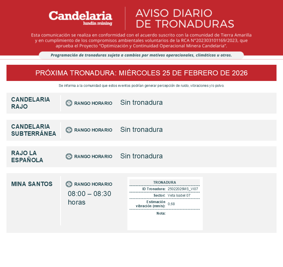 INFORMATIVO DE TRONADURAS DISTRITO CANDELARIA / MIÉRCOLES 25 DE FEBRERO DE 2026