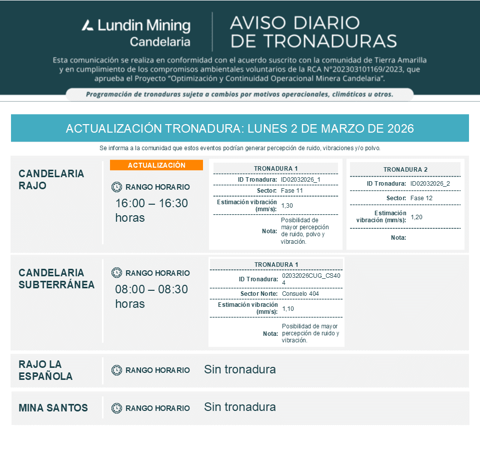 ACTUALIZACIÓN DE TRONADURAS DISTRITO CANDELARIA / LUNES 2 DE MARZO DE 2026