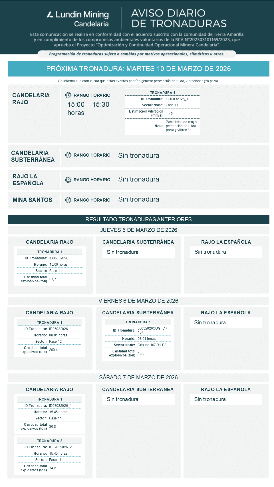 INFORMATIVO DE TRONADURAS DISTRITO CANDELARIA / MARTES 10 DE MARZO DE 2026